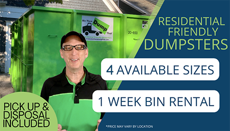 Our dumpsters are large enough (or small enough) to accommodate almost any residential cleanup, move out, remodeling project or disaster restoration project.